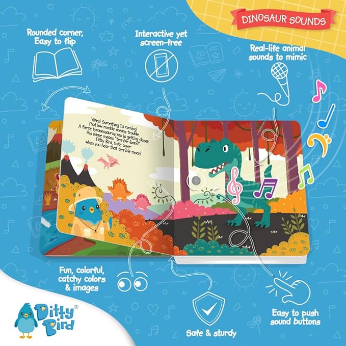 - π¦Time to rawr Dino lovers: Let your kids enjoy listening & learning about Dinos with this Ditty Bird books with sound featuring 6 different dinosaurs & the sounds they make! Whether your little boy or girl is a Triceratops, Stegosaurus, T-Rex, Brontosaurus, Velociraptor fan, they'll surely love these toddler books!