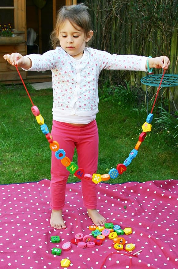 - This alphabet and number blocks lacing game is an ideal toy for children to learn alphabet, numbers, counting, colours and shapes, different category of objects, to practice concentration, creative thinking and eye and hand coordination and preparation for tying shoe laces. It is great children number games and alphabet games.