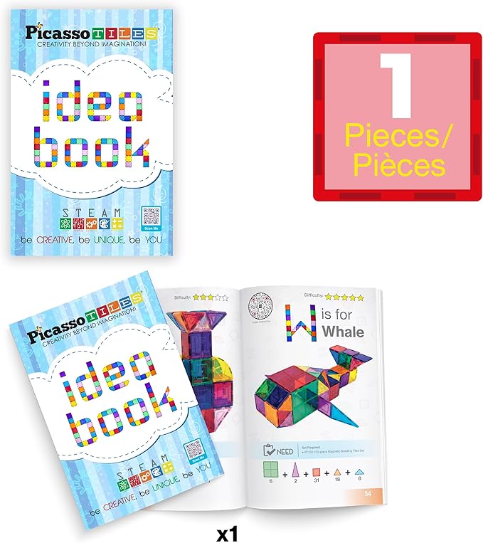 - COMPATIBLE WITH ALL PICASSOTILES SETS: Designed to work seamlessly with all PicassoTiles magnetic tile collections, this book enhances any existing set by showing new ways to play. Whether you own basic square tiles or deluxe marble run kits, the illustrated ideas maximize reuse and expand creative possibilities across every product line.