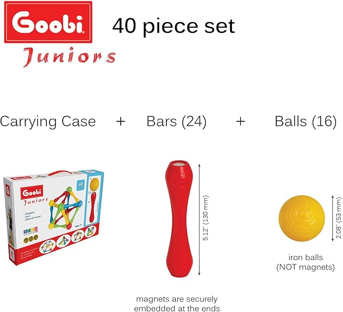 Goobi 40 Piece Construction Set Large Building Blocks Developmental Play Magnetic Sticks STEM Learning Colors Creativity Imagination 3D Puzzle Educational Toys for Ages 1 2 3 Year Toddlers Preschool