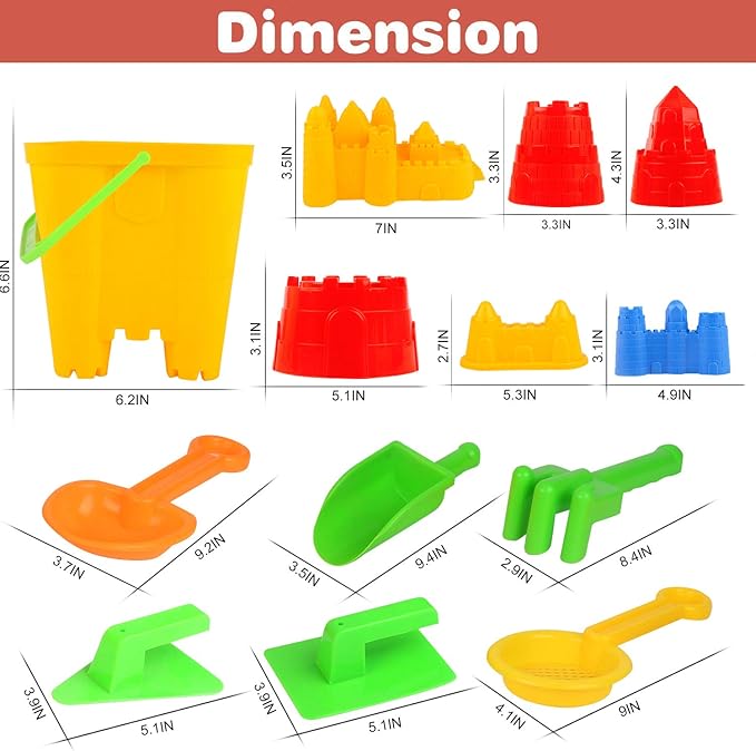 - Endless Castle Designs: With 7 castle molds and various sand molds and tools, your child can create a diverse range of castle designs and shapes, sparking imaginative play for hours