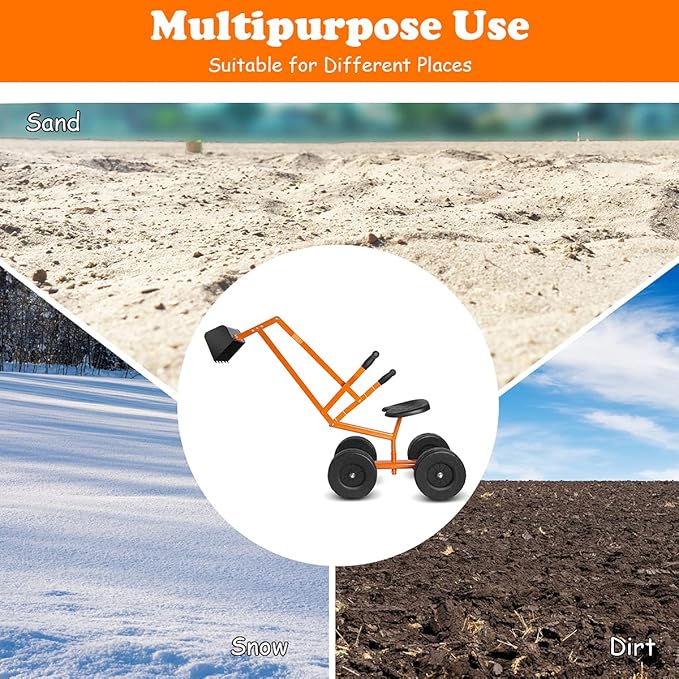 - [ Sturdy Metal Frame ]: Constructed by metal frame, the sand digger features durable construction and weather resistance. Coated in eco-friendly paint, the ride on sand digger is secure for your kids to play for several years!