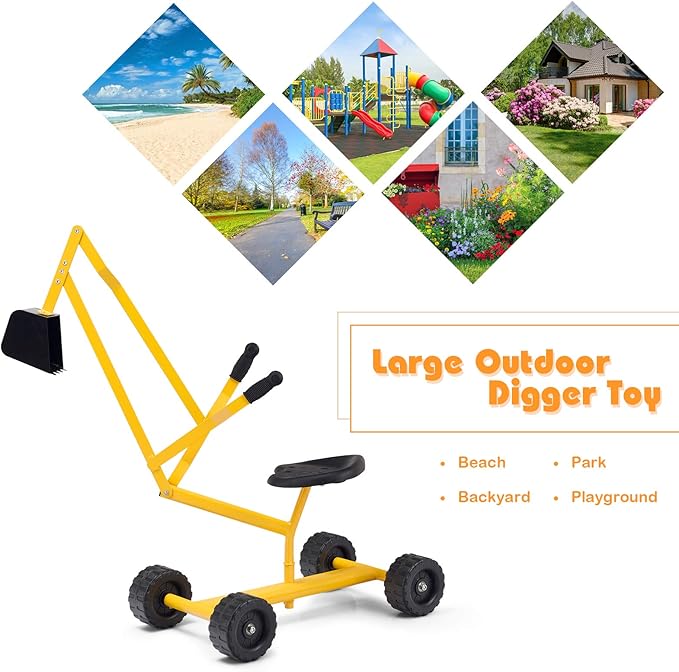 - [ Sturdy Metal Frame ]: Constructed by metal frame, the sand digger features durable construction and weather resistance. Coated in eco-friendly paint, the ride on sand digger is secure for your kids to play for several years!
