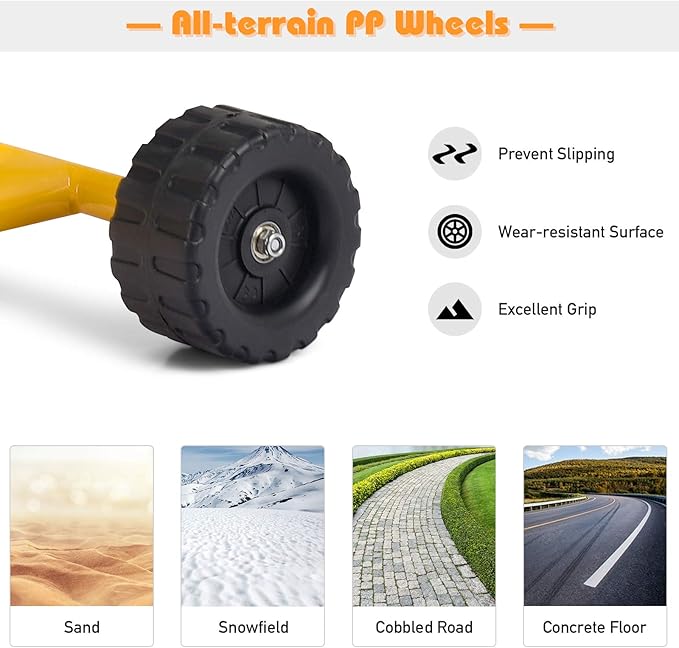 - [ 360° Rotatable Seat & Wear-resistant Wheels ]: The design of full 360° rotation seat offers your kids more flexibility to play all around. The dig likes an excavator in all directions with the moving arms and bucket to give more fun for your kids. The wear-resistant wheels allow children to dig on the beach, grass, and indoors.