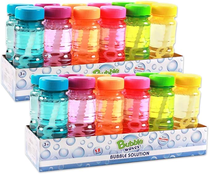 Big Bubble Bottle 24 Pack - 4oz Blow Bubbles Solution Novelty Summer Toy - Activity Party Favor Assorted Colors Set