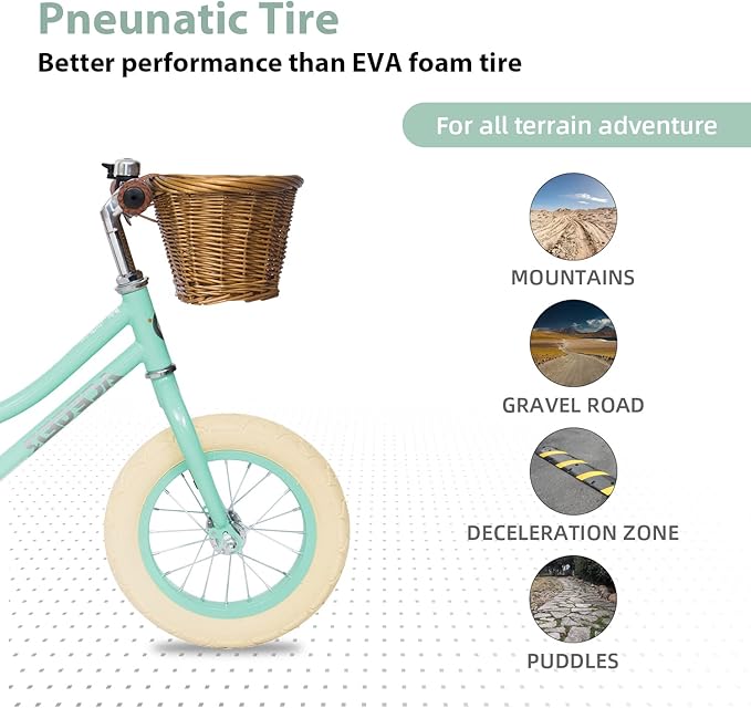 - Lovely Components : Handlebar grips, reflectors and a bell are included. The extremely cute wicker basket to let the kids pack all the stuffed animals or snacks.