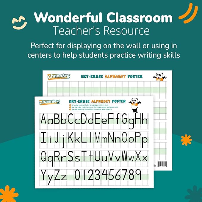 - Visual Handwriting, Alphabet, and Math Wipe Clean Dry Erase Poster; Grades Pre K – 2; Practice learning, tracing, and writing the alphabet and Numbers; Perfect for elementary school children; Easy clean, write on and simply wipe off