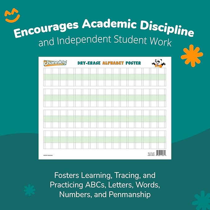 Channie’s Visual Two Sided Large Dry Erase Alphabet & Numbers Poster Board - Size 22” x 17”, Ages 3 and Up, PreK – 2nd Grade - Homeschool Learning Supplies for Summer School Teaching