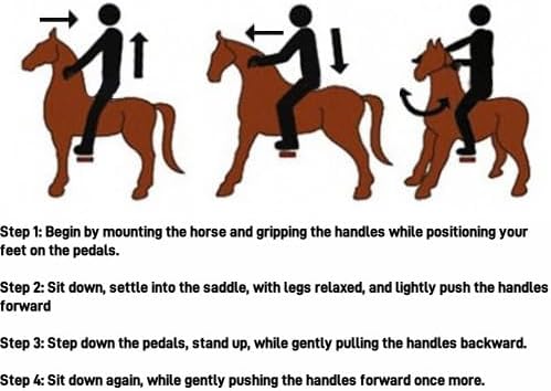 - EASY to USE: Convenient for riding indoor and outdoor on flat ground, just lying legs against the horse and pressing the pedal then pony starts moving, ride like a real horse, no electricity, soft wheels, do not scar the floors
