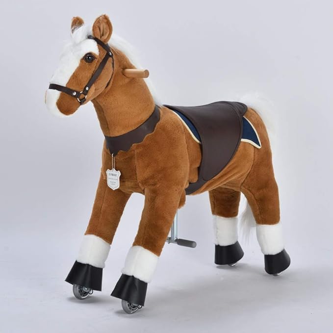 - SPECIFICATIONS: Conforms to US toys safety standard (ASTM F963) and European standard (EN71) | Suit age from 4-9 years, weights between 31 LBS to 132 LBS| Product size is: 34*12*36 Inch | Walk without any Power or Battery | Main material: Steel and Plush.