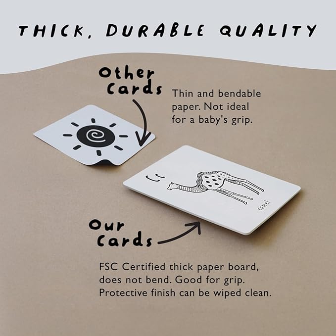- ENHANCES COGNITIVE DEVELOPMENT WITH HIGH-CONTRAST ART: These educational black and white kids flash cards are designed to captivate newborns, infants and toddlers, promoting visual tracking and cognitive growth. Ideal for tummy time and sensory play, they serve as essential tools for alphabet learning and early brain development of your kids.