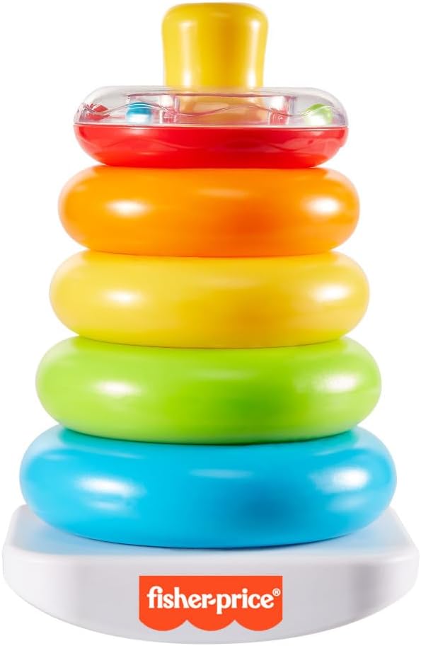 Fisher-Price Baby Stacking Toy Rock-A-Stack, Roly-Poly Base with 5 Colorful Rings for Ages 6+ Months