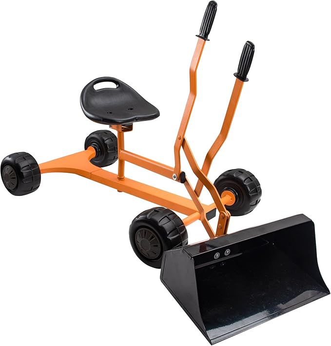 - DURABLE AND LIGHT FRAME: The earth mover toy comes in construction orange and is constructed with durable metal frame with a light and easy-to-work two handed controls for digging and dumping action.