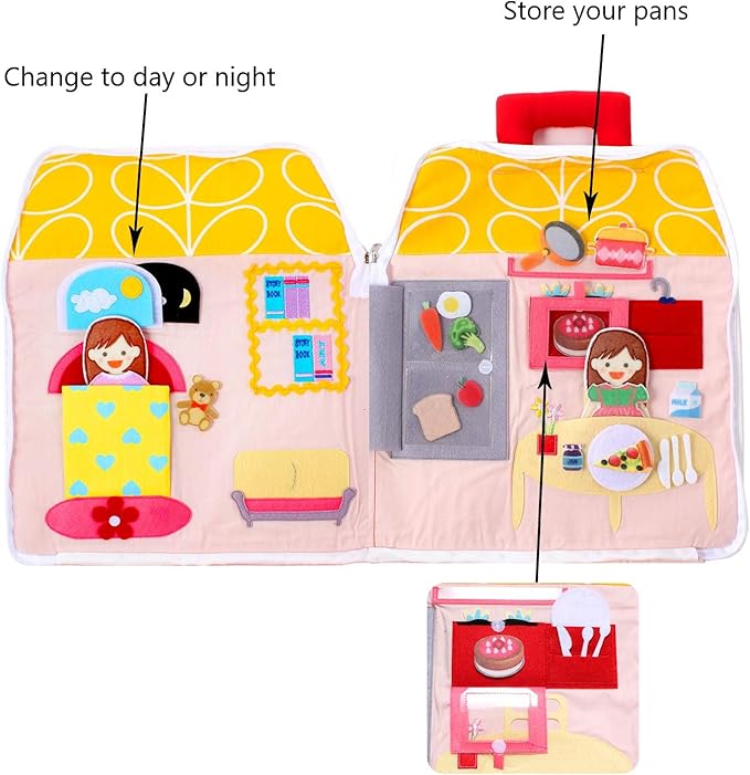 Quiet Busy Book, Carry Home Dollhouse Bag, Educational Toddler Activity Toy