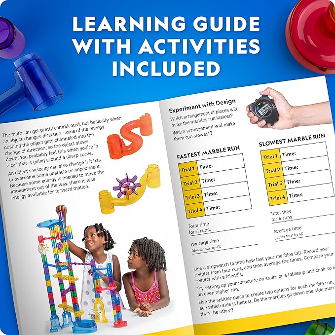 - GREAT STEM TOY – The included Learning Guide inside teaches about the physics of motion and aerodynamics. It also includes marble run construction experiments!