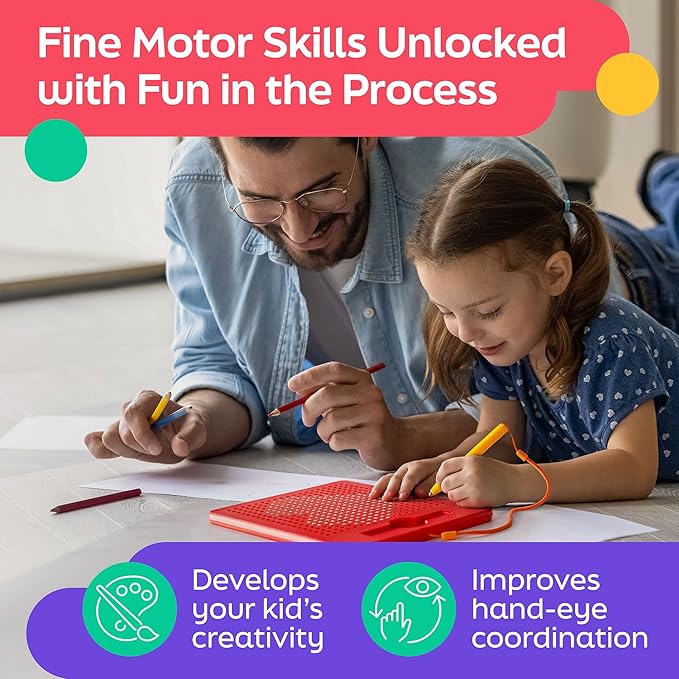 • No Eraser Needed: Let your kids unleash their creative juices just by pointing the magnetic nib of the stylus on each hole to move the magnetic beads to the surface. To undo, just use the side of the pen to push them back down.