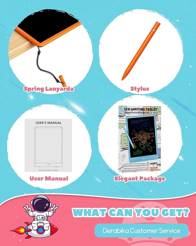 - Eye Protected Color Screen: ORSEN lcd writing tablet for kids adopt newest pressure-sensitive technology, and has 10 inch color large screen for easy viewing and unleash the imagination of toddler. The eye-protection colorful screen of drawing tablet without radiation and no glare, avoiding injury to a child’s eyes when children use for a long time
