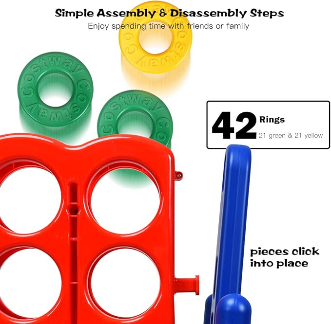 COSTWAY Jumbo 4-to-Score Giant Game Set, 4 in A Row for Kids and Adults, 3.5FT Tall Indoor & Outdoor Game Set with 42 Jumbo Rings & Quick-Release Slider, Perfect for Holiday Party & Family Game
