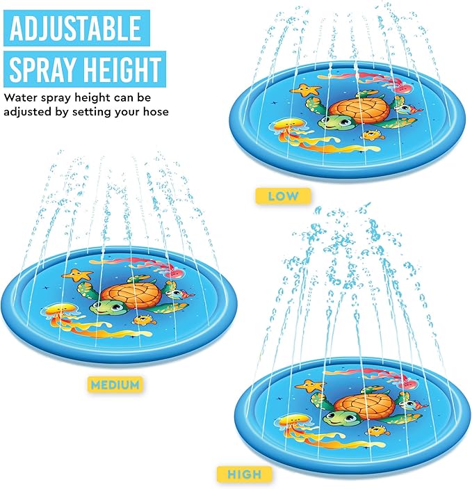 - Make a Splash into Safety - Your little one's safety while playing in the backyard outdoor lawn summer toys is our top priority. Our splash pad water sprinkler toy for kids toddlers is a great alternative to your traditional swimming pool that your dogs and family love but the splashpad offers all the excitement and outdoor games and sprinkler for kids, we guarantee uncompromised quality with a splash pad that is both BPA and phthalate free.