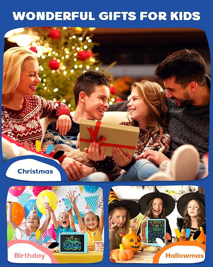- EYE PROTECTION COLOR SCREEN: 10-inch LCD colorful screen, easy for viewing and graffiti, free child’s imagination. This drawing tablet without radiation, no glare, safe and comfortable, even kids use for a long time. Great educational preschool toys age 3 4 5 6 7 8 boys girls!