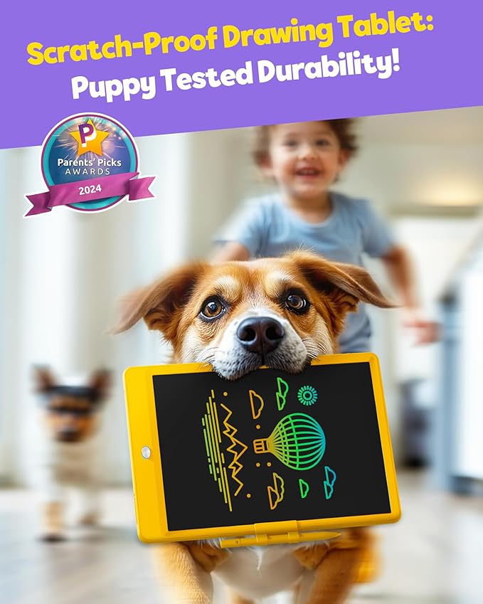 - Free Child’s Imagination: The kids drawing tablet provides 10 inches of space for kid’s writing and drawing, free children's imagination. The eye-protection colorful screen of writing boards provides a better painting experience, avoiding injury to a child’s eyes from long-term use