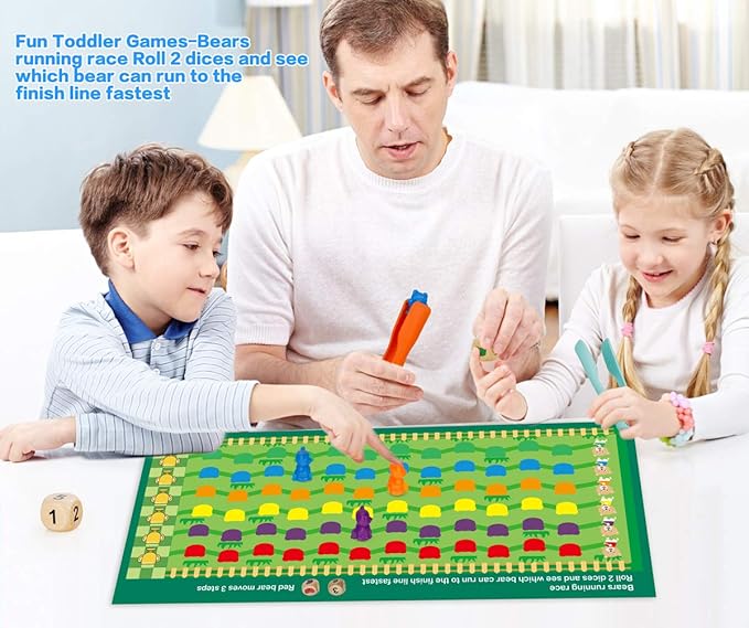 - 【MORE ACCESSORIES】This toy comes with a bears running match chessboard empower a more mathematical and fun experience. Using 2 dices. kids can get engaged through more complex activities that stimulate your child’s brain to think critically, Plus, the large tweezers help strengthen and prepare little hands for future skills such as writing. Great tool for special needs students, (ADHD, Autism) or any preschooler.