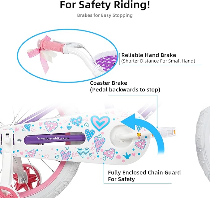 JOYSTAR Angel Girls Bike for Toddlers and Kids Ages 2-13 Years Old, 12 14 16 18 20 Inch Kids Bike with Training Wheels & Basket, 20 24 Inch Girls Bicycle with Handbrake & Kickstand