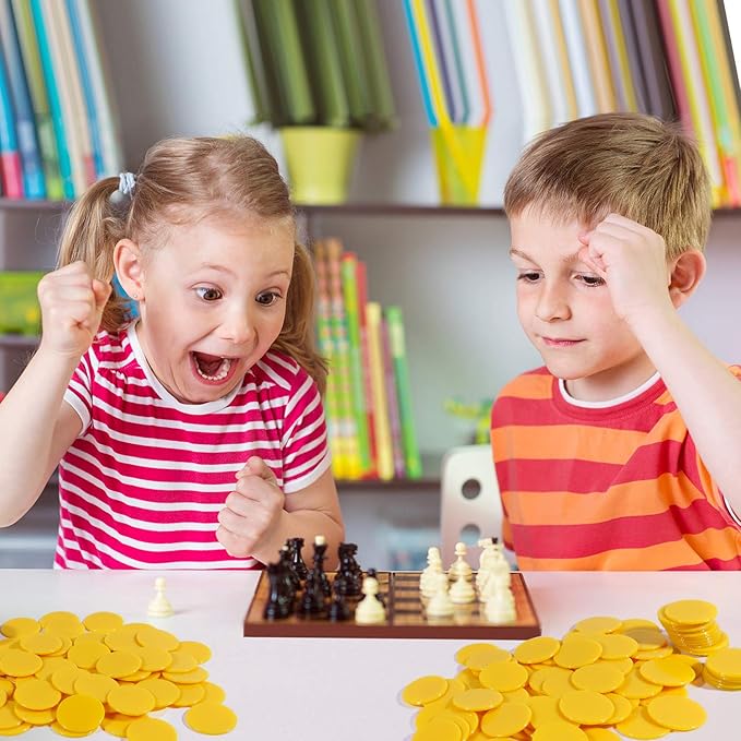 Coopay 1-1/5 inch Plastic Learning Counters Disks Bingo Chip Counting Discs Markers for Math Practice and Poker Chips Game Tokens, 200 Pieces(Yellow)