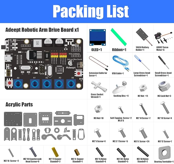 - 【Learn Programming & Robotics】Developed for robot lovers, the 5-DOF robotic arm kit is compatible with Arduino IDE. Detailed manual(PDF) and a variety of interesting Arduino code routines are provided.