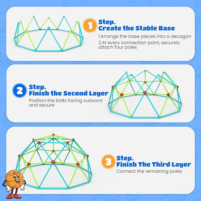 - Off Screens, Into Fun -- Encourage outdoor fun and healthy habits! Our dome climber builds strength, coordination, and lifelong fitness—perfect for kids aged 3–10 to play together, indoors or out.