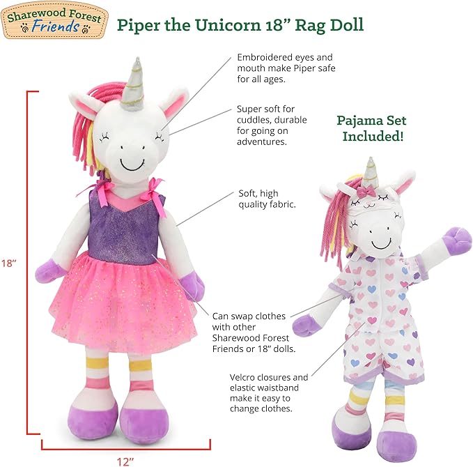 - IDEAL SIZE: Proportioned for small hands, this rag doll is easy to hold, dress, and carry, making it ideal for toddlers 1-3. Part of the Sharewood Forest Friends collection, including Aria, Brie, Fiona, and more, it sparks imagination.