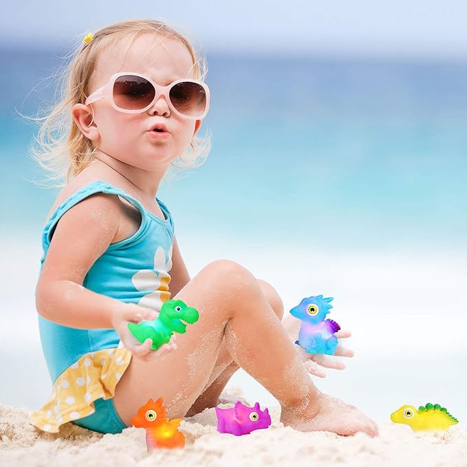 - Upgrade design, dinosaur bath toys with movable accessory to replace batteries for further glowing.