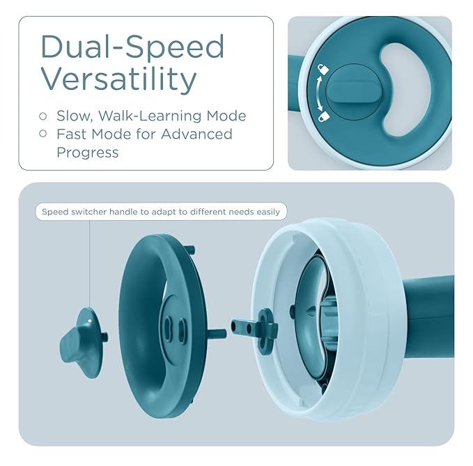 - ๐๐๐ฃ๐ฎ๐ฌ๐ญ๐๐๐ฅ๐ ๐๐ฉ๐๐๐: This baby walker with wheels has a two-speed control switch on the rear wheels to grow with the babies' steps, and the rear wheels applied antislip strips increase friction with the ground, avoiding "overspeed" or "out of control"