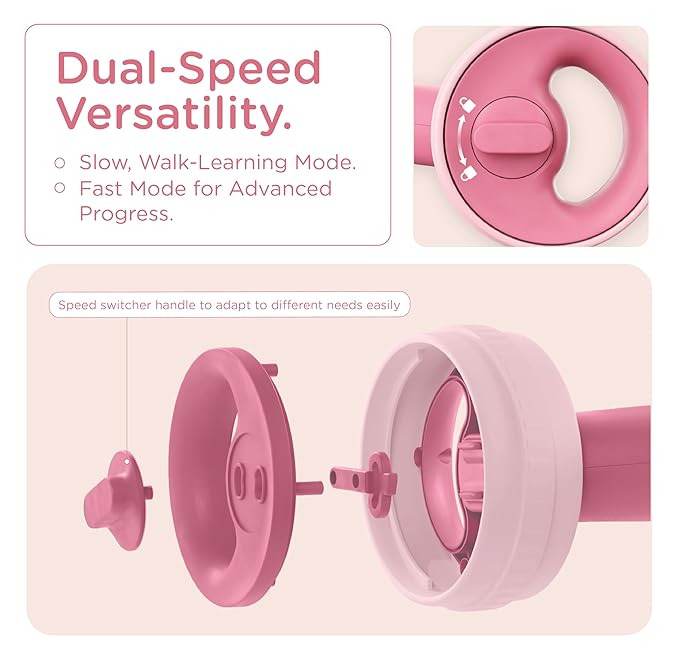 - ๐๐๐ฃ๐ฎ๐ฌ๐ญ๐๐๐ฅ๐ ๐๐ฉ๐๐๐: This baby walker with wheels has a two-speed control switch on the rear wheels to grow with the babies' steps, and the rear wheels applied antislip strips increase friction with the ground, avoiding "overspeed" or "out of control"