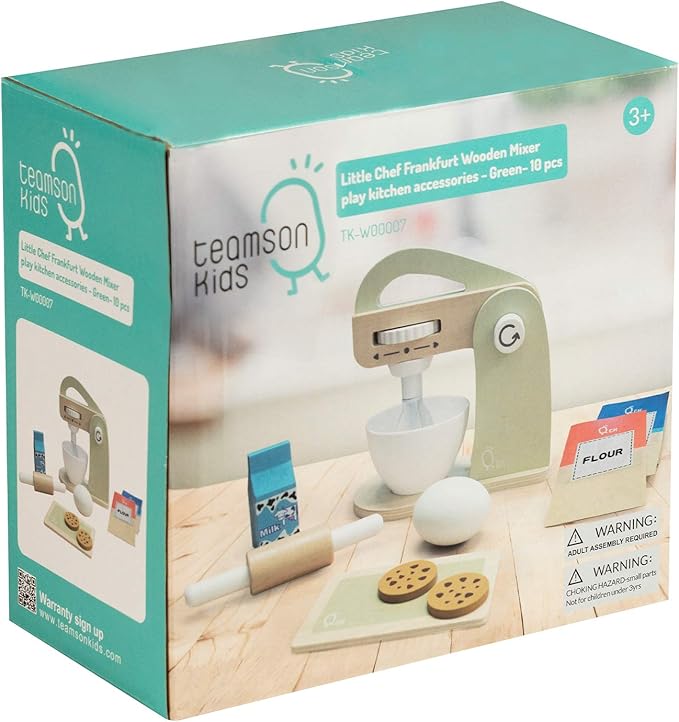 Teamson Kids - Little Chef Frankfurt Wooden Mixer Play Kitchen Accessories - Green- 10 pcs