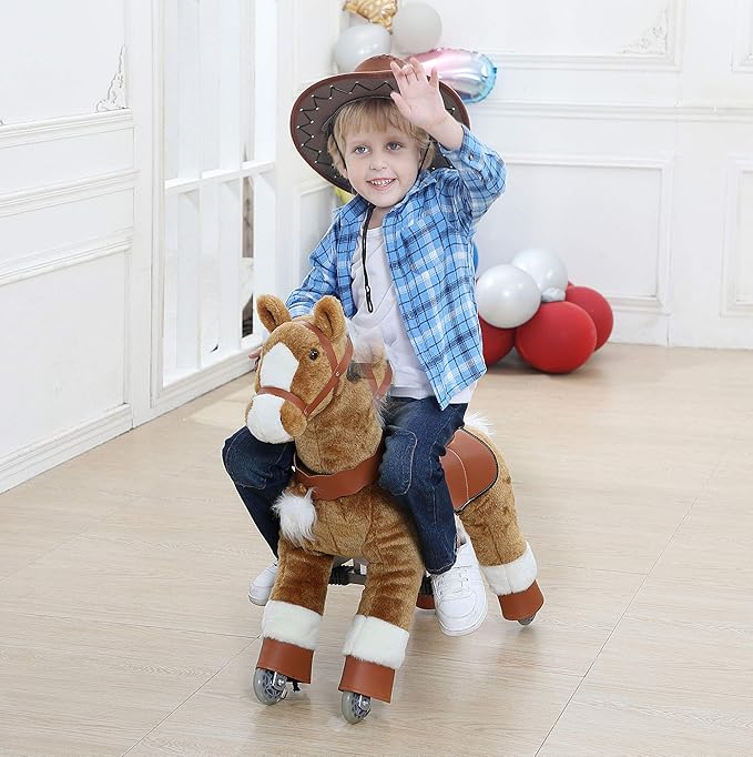 JoJoPooNy Ride on Horse Toy, Kids Ride on Toy for 3-6 Years Old, Premium Riding Horse Plush Animal Toy, Walking Horse Toy with Wheels (27 Inch Height)