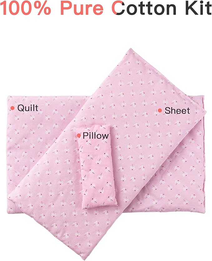 - Doll Bed Set:Include pillow,quilt and sheet.Measuring 21.1 x 13.4 x 12.6 Inches, fit most soft bodied within 20Inch dolls girls.