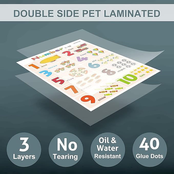 - 【Flat Shipping】We do not roll our learning posters in tubes, they will be flat packed and come with 20pcs glue dots for free. You can mount the learning posters with these glue dots. Make your child’s learning experience easier using these homeschool, playroom & nursery posters. These early educational charts help turn your home or toy room into a classroom. Brighten your space and challenge your children to learn new things.