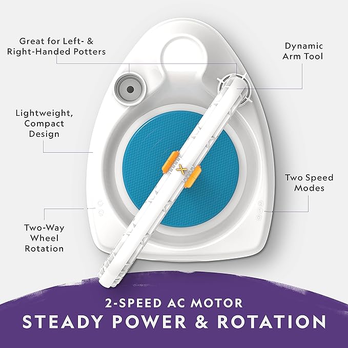 - INTEGRATED ARM TOOLS MAKE POTTERY EASY – Perfect for right- and left-handed potters, this pottery wheel is specially designed for beginners of all ages, with innovative arm tools to assist in centering, opening, and shaping clay.