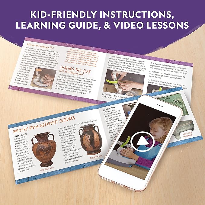 - KID-FRIENDLY INSTRUCTIONS - The detailed Instructions include video lessons and helpful hints to start kids off right, while the illustrated Learning Guide teaches the science and history of pottery.