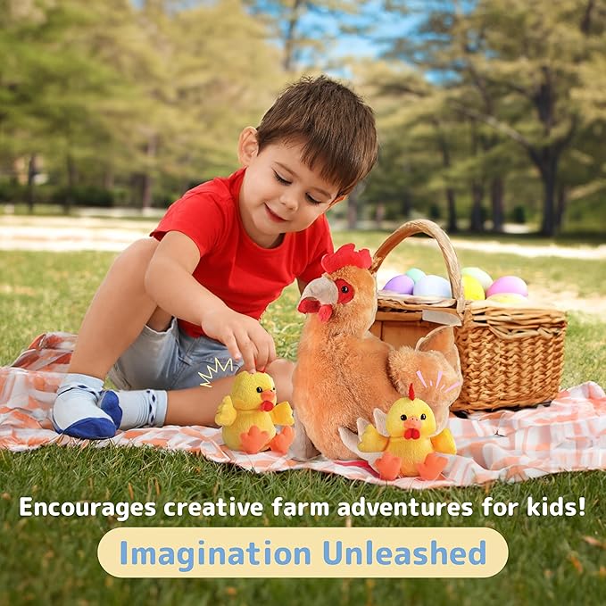 - Easy to Carry: The hen plush has a zippered pouch to store the eggs and chicks, making it simple to take on trips or store neatly. Suitable for playtime anywhere