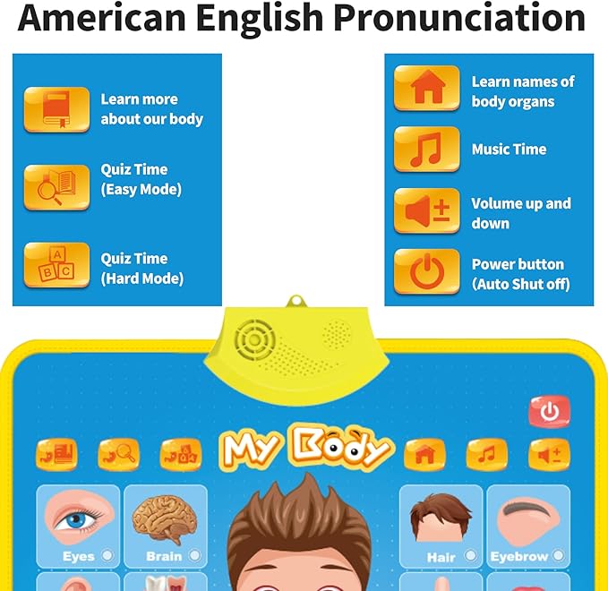 - ★☆★ READ, TOUCH AND LEARN - Touch and hands-on are the best way for kids to learn and experience as kids learn through play and exploration of their environment, they understand best when taking a hands-on approach to learning. Kids will learn how our body parts, organs, muscles, and bones function; filled with interesting facts from this poster and test their knowledge by taking the quiz.