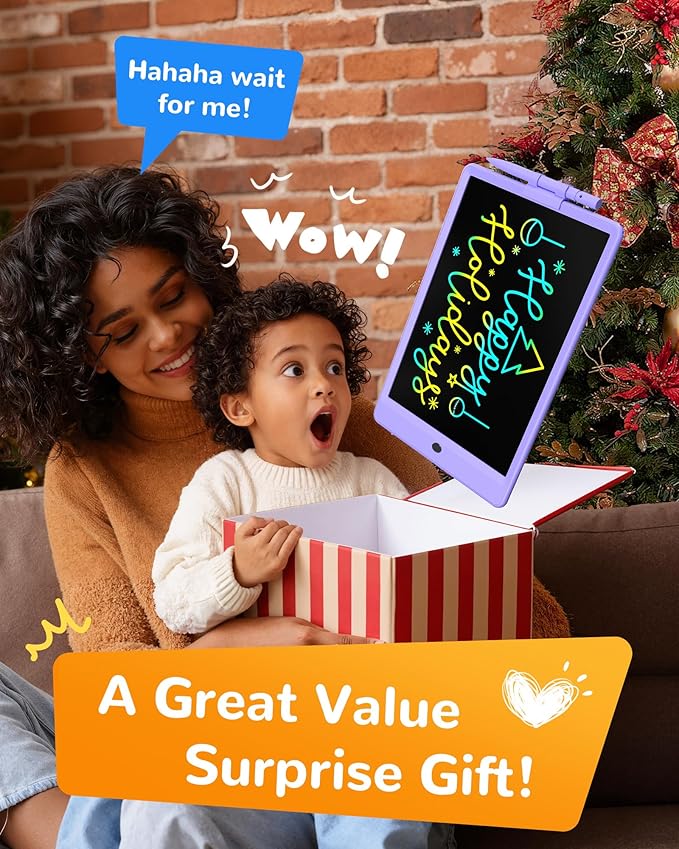 - EYE PROTECTION LCD WRITING TABLET: Adopts 2022 LCD pressure-sensitive technology and 10-inch LCD colorful screen. This doodle board toys without radiation, no glare, safe and comfortable even use for a long time.