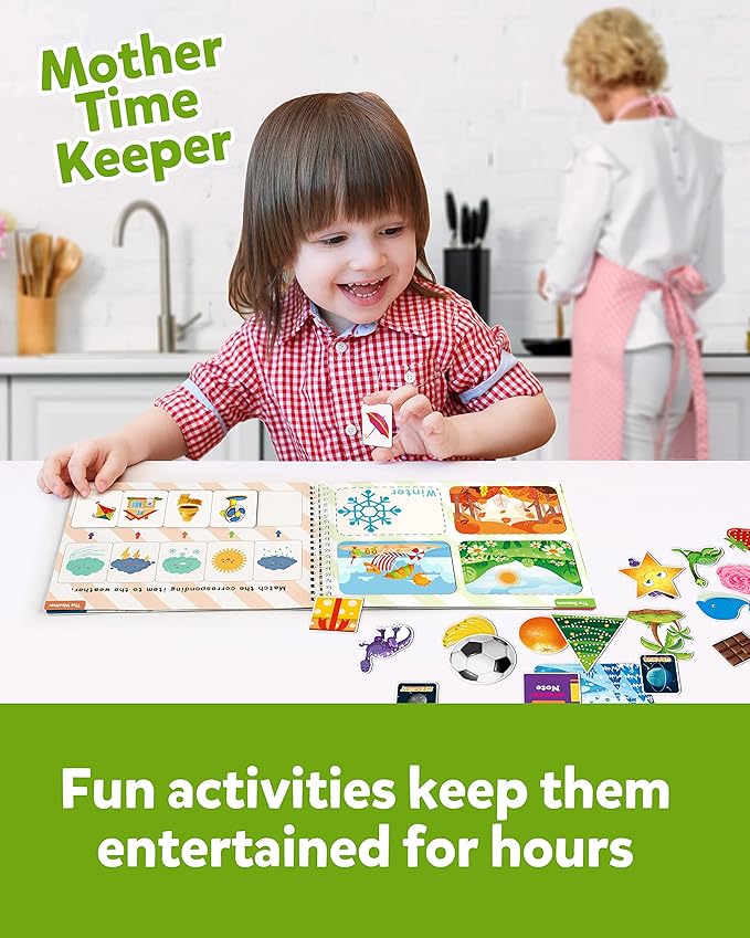 - Preschool Educational Book: The busy book contains 9different magnetic matching/sorting activities and is perfect for early learning. A great game for memory and a teaching tool to prepare for preschool, homeschooling. Big pages and magnets are big and easy to read the quick grab-and-go book.