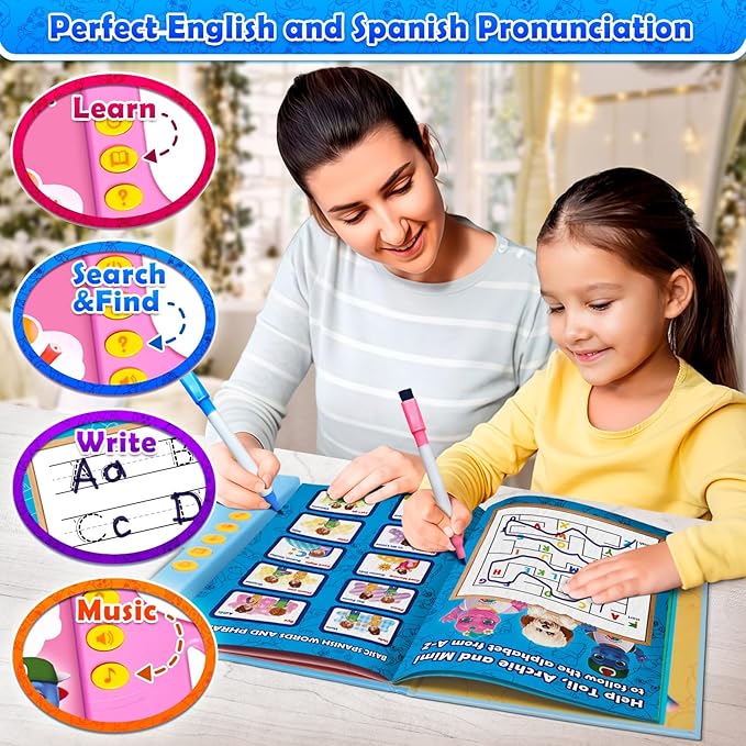 - 🔰 INTERACTIVE ELECTRONIC BOOK: Learn by hearing how to identify & pronounce the letters/numbers/words with clear American pronunciation. handwriting practice, tracing book with Dry Erase Marker.Our learning & education toys will enhance kids learning activity in a fun interactive way