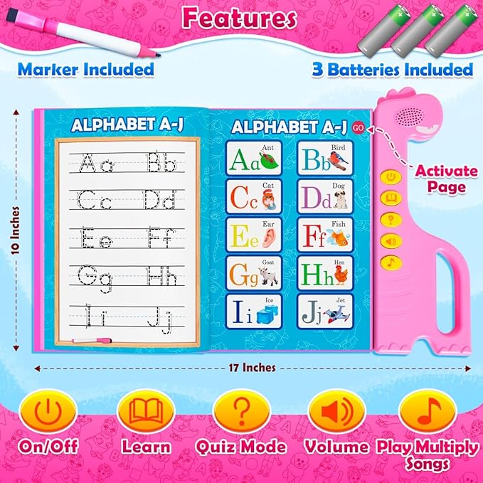 - 🔊 INTERACTIVE ABC SOUND BOOK FOR FUN HOLIDAY LEARNING Turn learning into excitement this holiday season with touch-activated sounds, clear American-English pronunciation, and engaging audio that keeps kids focused. Children learn letters, numbers, words, and phonics through fun repeat-after-me play—perfect for gifting during Christmas and New Year.