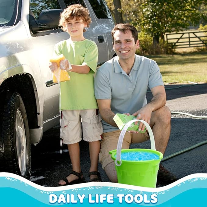 - 【SUPERIOR SAFE MATERIAL】The buckets are made by high-quality plastic, with a sturdy handle to carry a good amount of sand & water on the beach.