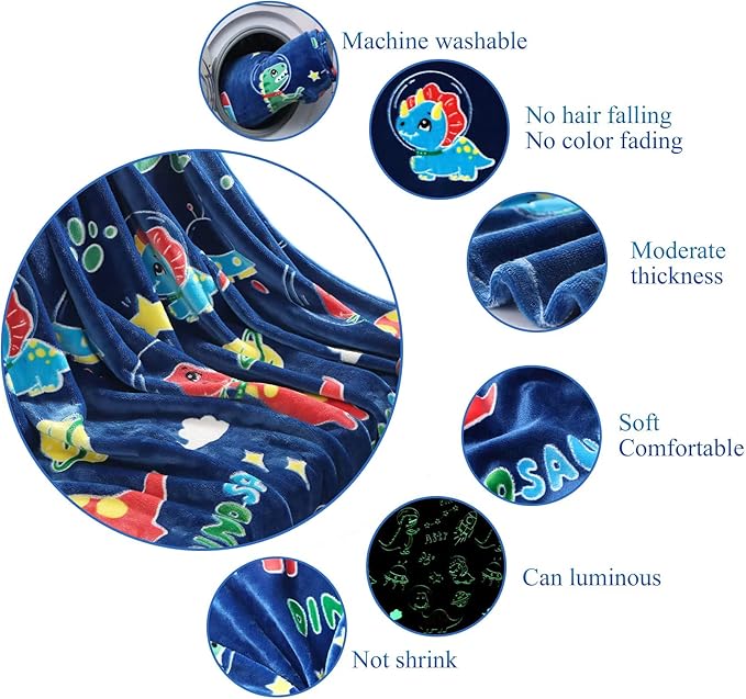 - ☆Suitable for All Seasons:Our super soft blankets are universal in all seasons.It will keep you warm in autumn and winter, and cool in spring and summer nights or in air-conditioned rooms.The blanket is tumble dryable, machine washable and dry cleanable without affecting the glowing effect, and the children's blanket will not lose its softness and comfort even after months of use