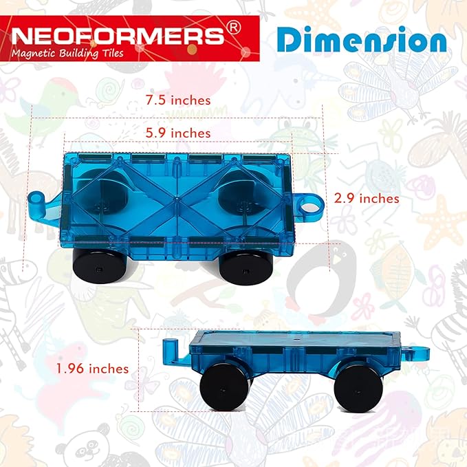 - 【NEOFORMERS 2 Piece Car Set】 :Toy construction magnetic building block 2pc truck set keeps school age children, toddlers, preschool kids, boys and girls 3+ occupied for hours of fun and learn.