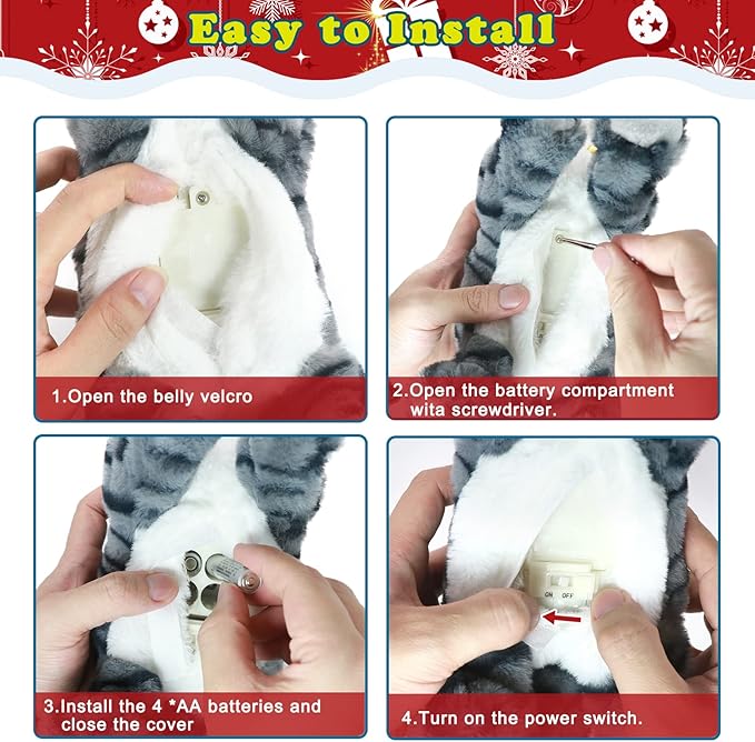- 【I AM SAFE】I am meek and well-behaved robot kitten, I don’t hurt people. Because I have soft plush material, skin-friendly and safe, filled with PP cotton, good resilience, and fine workmanship.With a smooth and soft body, I'm sure you will like to hug me, but please don't ride me. (As I am small with size 26*28.5cm)